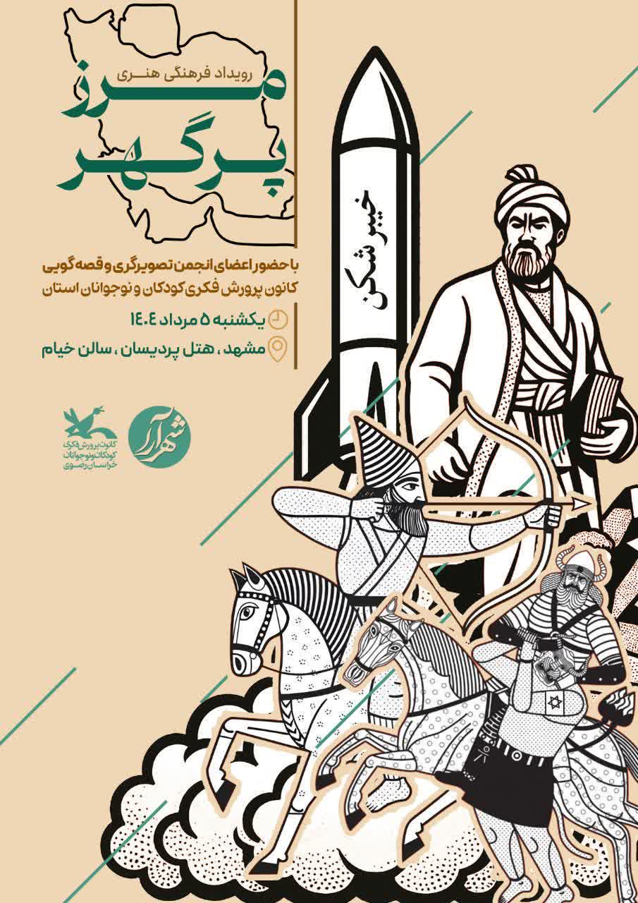 یکشنبه ۵ مردادماه ۱۴۰۴ ورکشاپ فرهنگی، هنری «مرز پرگهر» با حضور اعضای نوجوان انجمن تصویرگری و قصه‌گویی کانون پرورش فکری کودکان و نوجوانان خراسان رضوی در سالن خیام هتل پردیسان برگزار شد. در این ورکشاپ ابتدا تصاویری از قهرمان ایران‌زمین، از قهرمانان اسطوره‌ای و کهن چون آرش و رستم گرفته تا قهرمانان و رزمندگان هشت سال دفاع مقدس و سرداران و دلاوران کشورمان در جنگ ۱۲ روز اخیر توسط نوجوانان عضو انجمن تصویرگری کانون، در ابعاد بزرگ، طراحی و تصویرگری شد و در ادامه اعضای نوجوان انجمن قصه‌گویی در قالب قصه‌گویی، نقالی و پرده‌خوانی به شرح رشادت‌ها و بیان قصه فداکاری‌های این پهلوانان با تکیه بر تصاویر تولید شده پرداختند.
