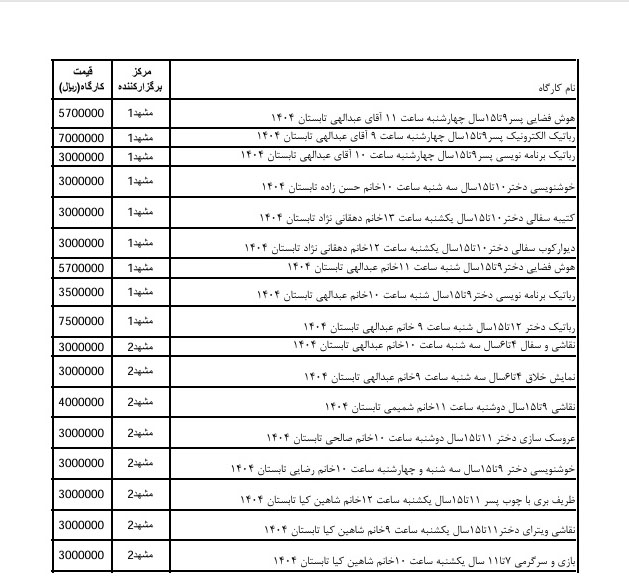 لینک دانلود کارگاههای استان خراسان رضوی:
